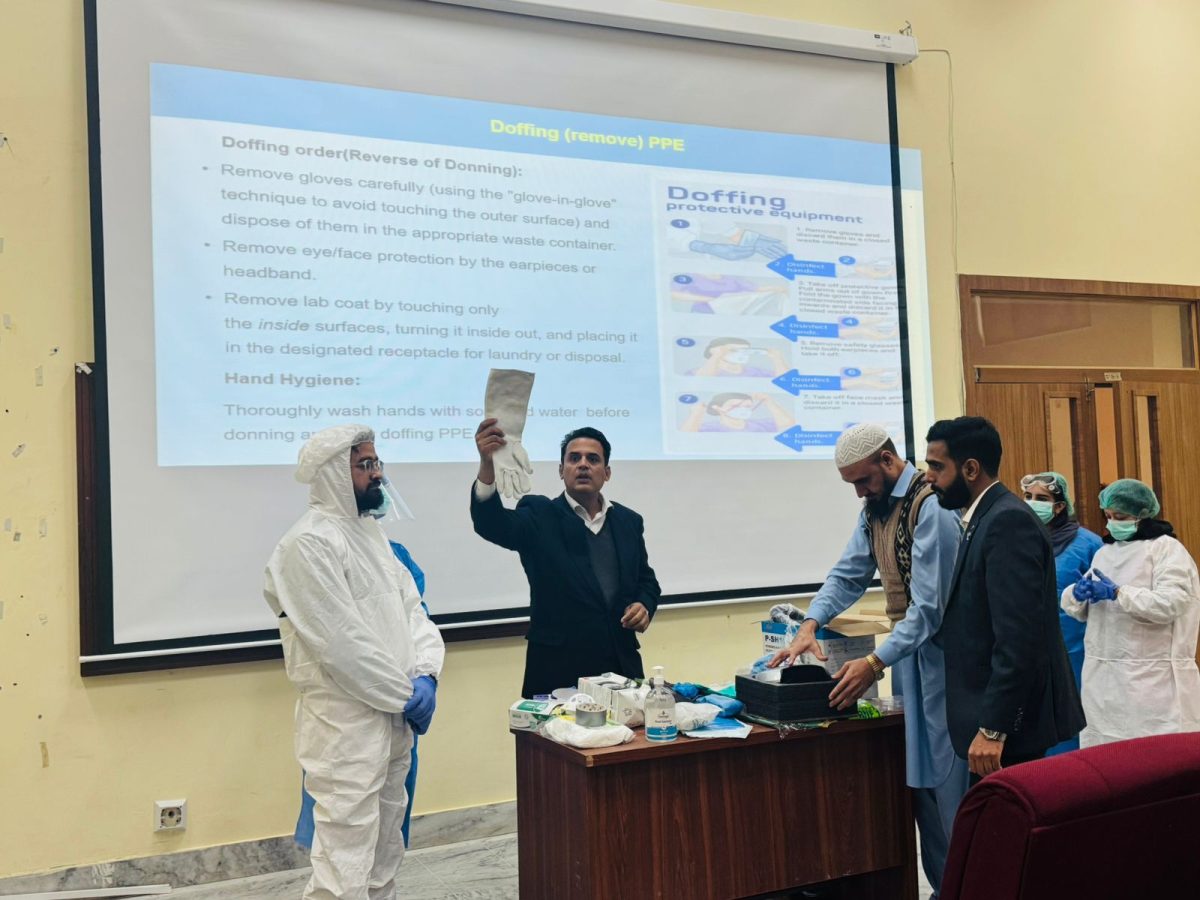 A distinguished delegation from DESTO BRC, Prof. Dr. Saifullah Khan, Dr. Irfan Ali, and Dr. Ali Hassan, led the sessions. The experts delivered highly insightful lectures and conducted hands-on, practical, and field training, equipping participants with modern biosurveillance techniques, their operational applications, and the latest trends in biological monitoring.